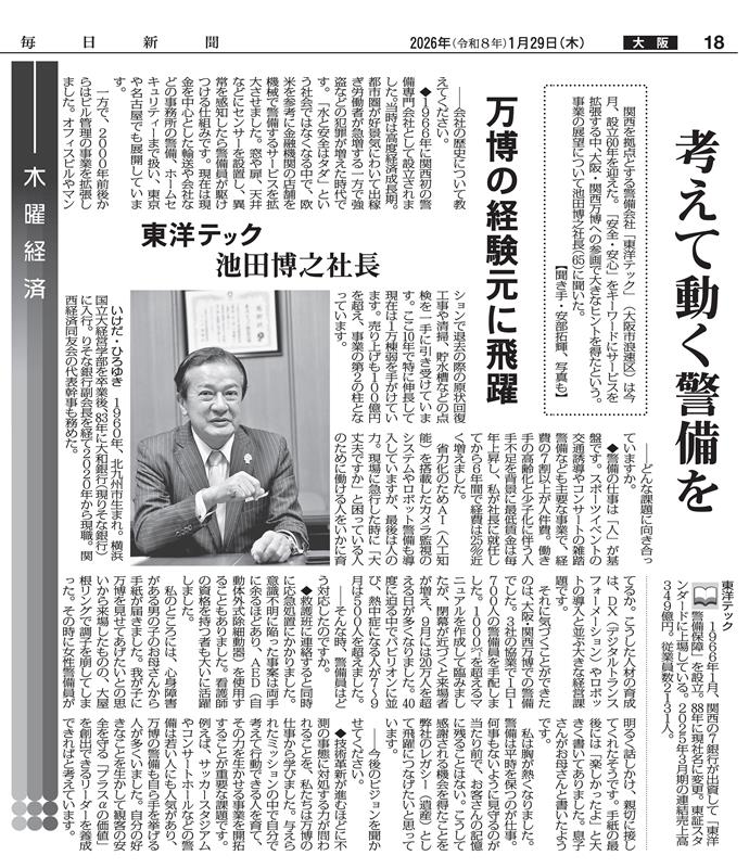 このたび、弊社 代表取締役社長 池田博之のインタビュー記事が『毎日新聞』に掲載されました。